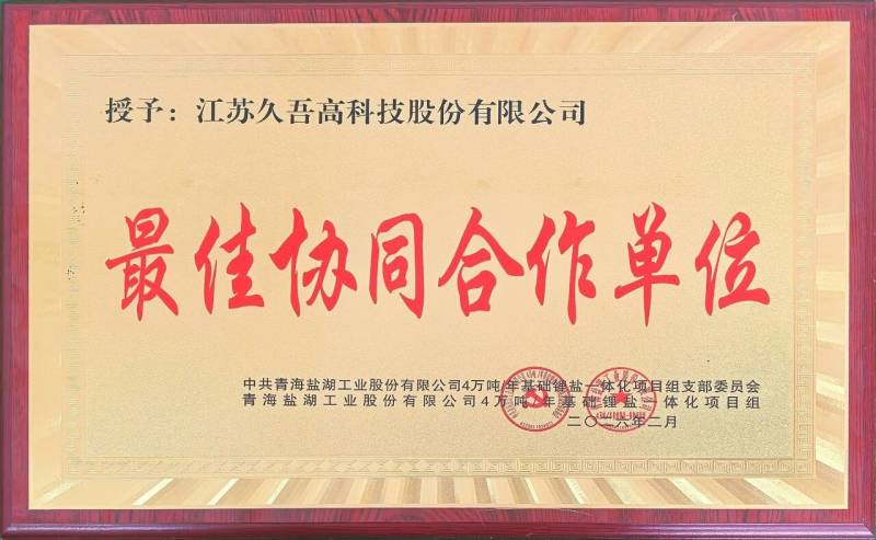 2月5日,国内已建成投产的最大的盐湖提锂项目——盐湖股份4万吨/年基础锂盐一体化项目组2025年度工作总结会暨表彰大会在格尔木隆重召开,久吾高科凭借在项目合作中的核心技术支撑、全流程高效协同及优异的现场服务能力,被授予最佳协同合作单位荣誉称号。定制化技术攻关 刷新盐湖提锂能效指标本次会议全面总结项目